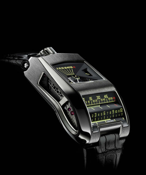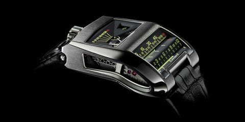 Launched in 2009, the UR-CC1 “King Cobra” stands as one of URWERK’s boldest and most technically ambitious creations. Inspired by a forgotten 1958 Patek Philippe prototype by watchmaking legend Louis Cottier, the King Cobra reimagined linear time display for the modern era. With retrograde minutes and seconds advancing across horizontal and vertical scales and a jumping digital hour window, the King Cobra offered a completely new way to experience time more cinematic than traditional, more sculptural than functional.