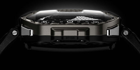 On the dial side, URWERK’s satellite hours glide across a retrograde minute track in a dramatic arc, enhanced by a bold 60mm case with sculptural edges and deep textures. Turn it over, and the time disappears — replaced by a futuristic metal carapace that feels more armor than watch.